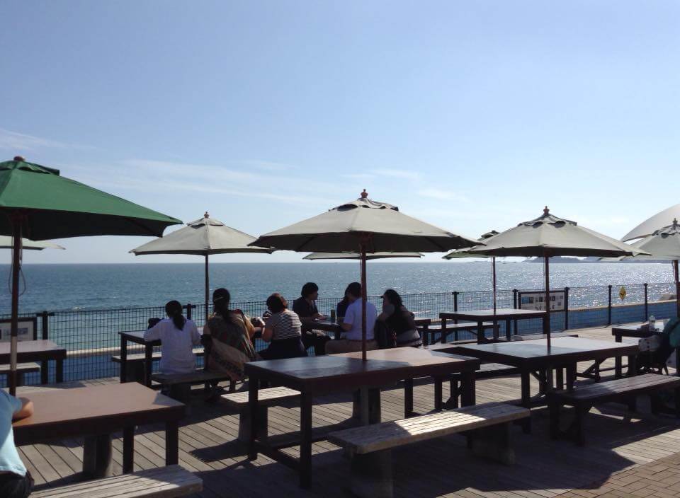 海辺の爽やかな風に吹かれながら、屋台で買ったチキンやベルーガまん、ラーメンなど思い思いの昼食を楽しみました。