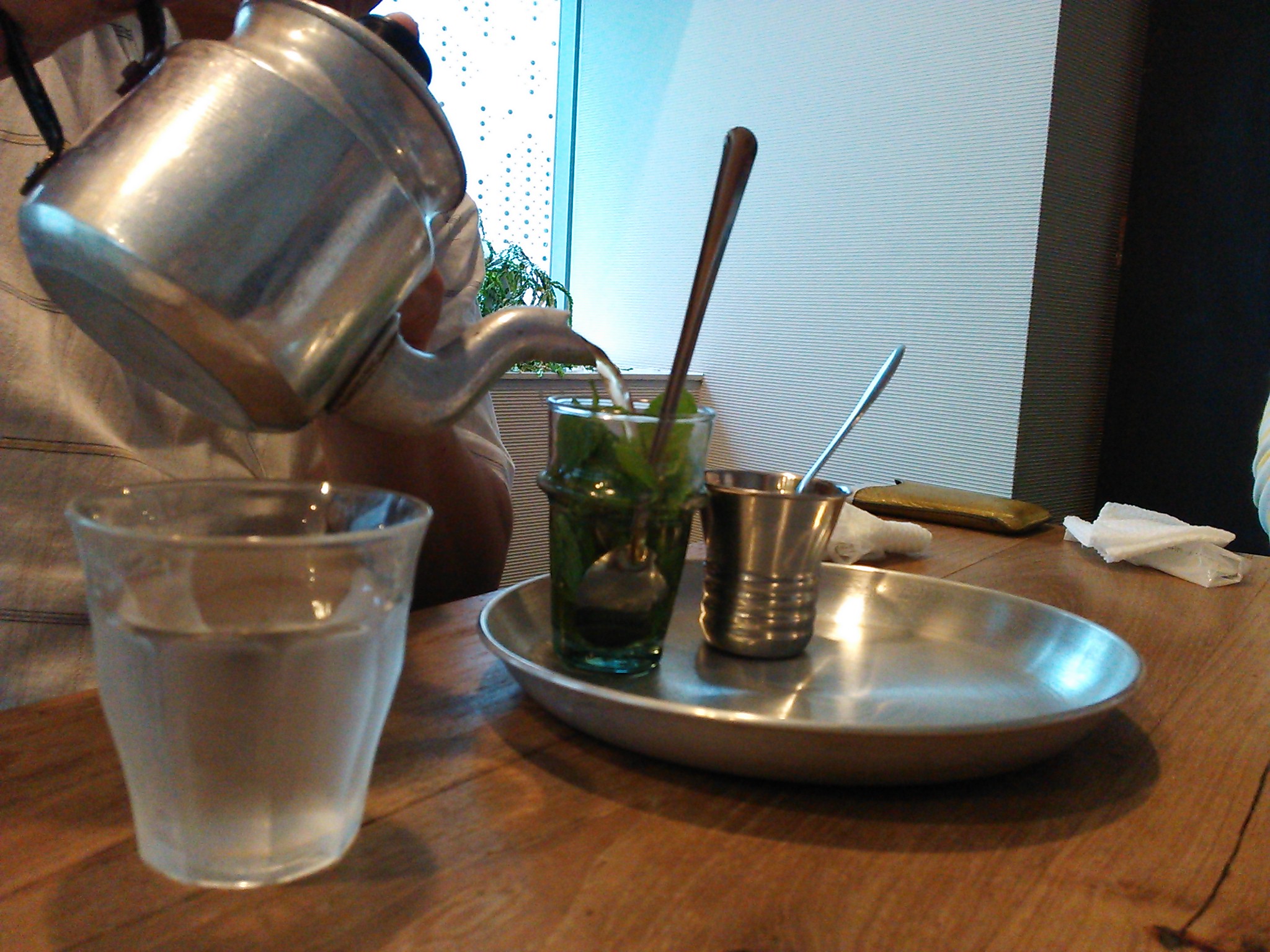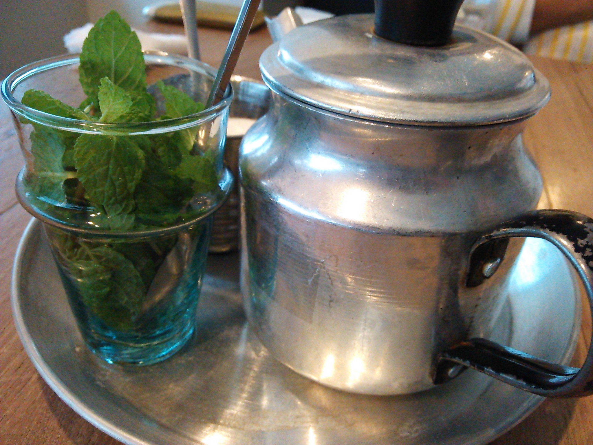 カフェで、kensaeさんがモロッコミントティーを飲みました。 不思議な味でした。
