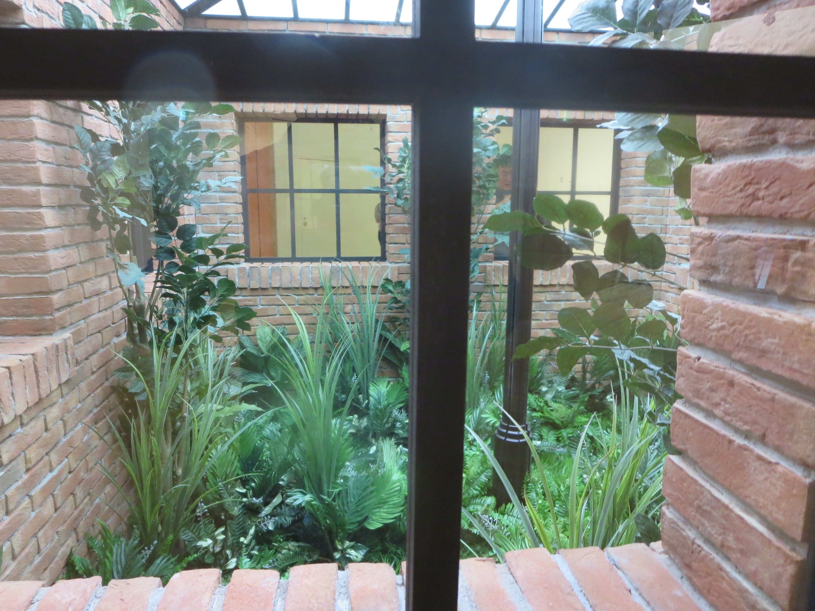 隣の窓からのぞきこんでいる人の顔が見えます。