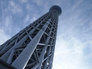 足下に着くころには晴れて、きれいにスカイツリーを真下から見上げることが出来ました。 とにかくデッカイ。